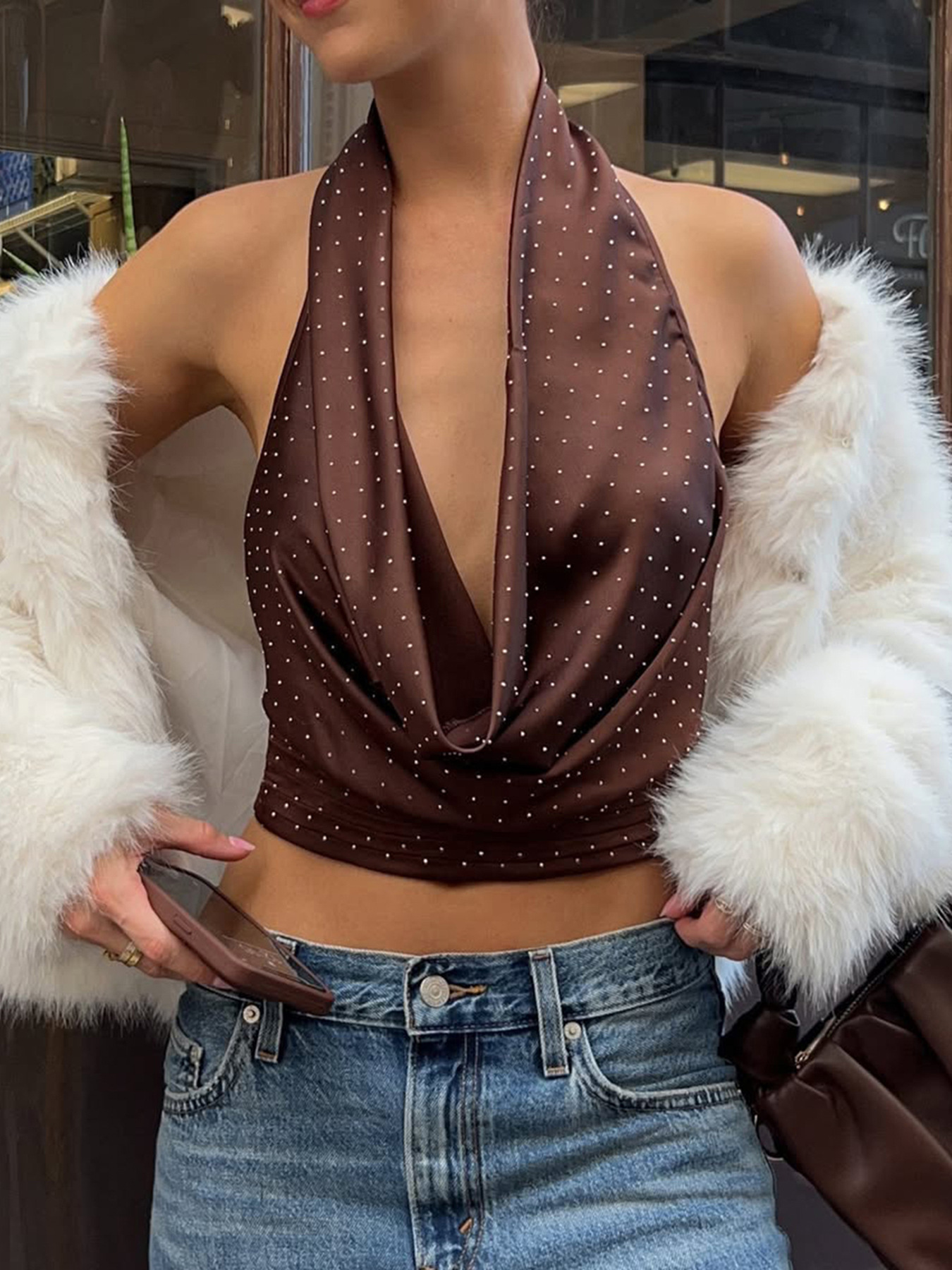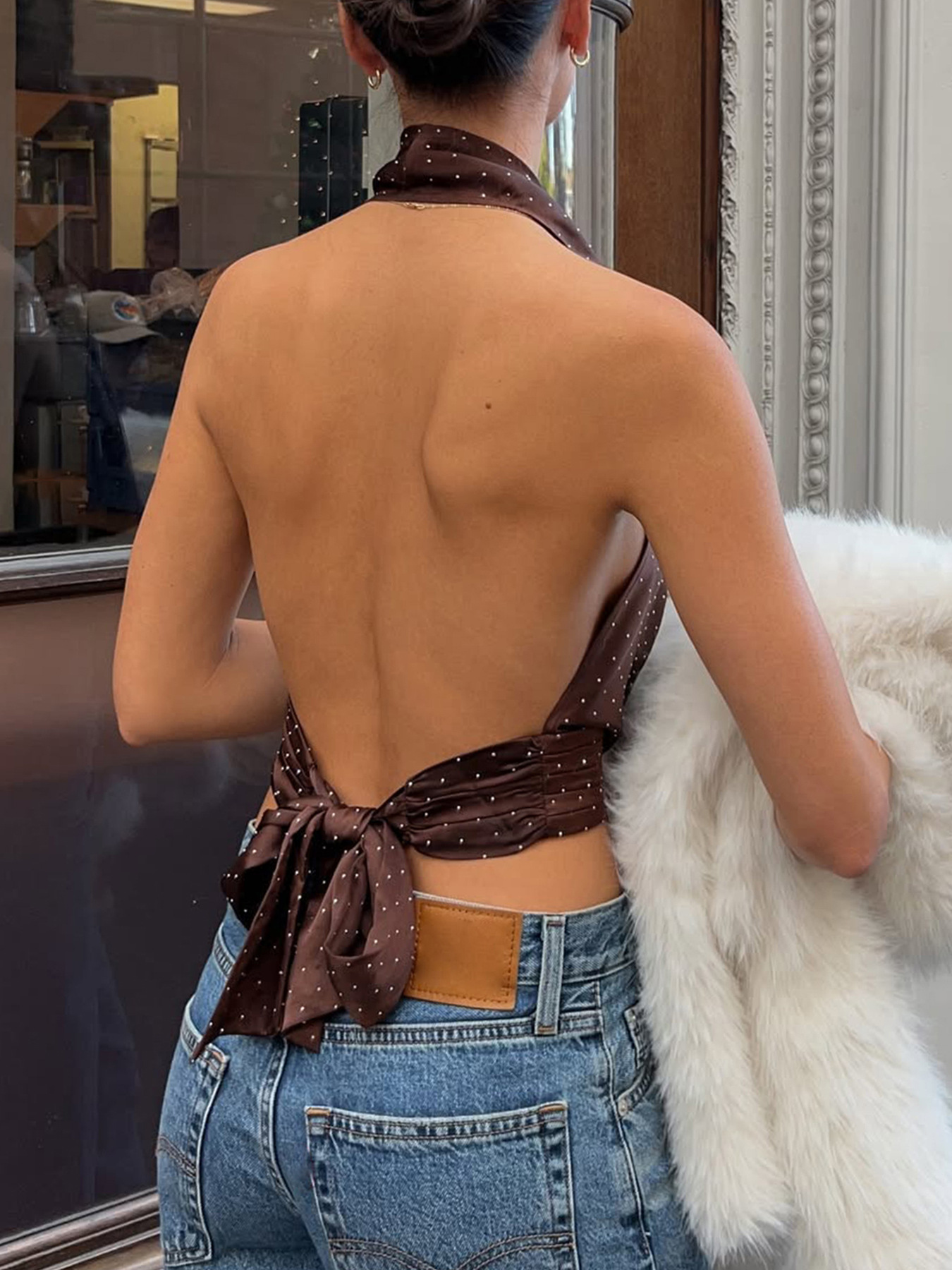 Chic Off-the-Shoulder Halter Backless Crop Top with Spicy Design for Slimming and Versatile Wear