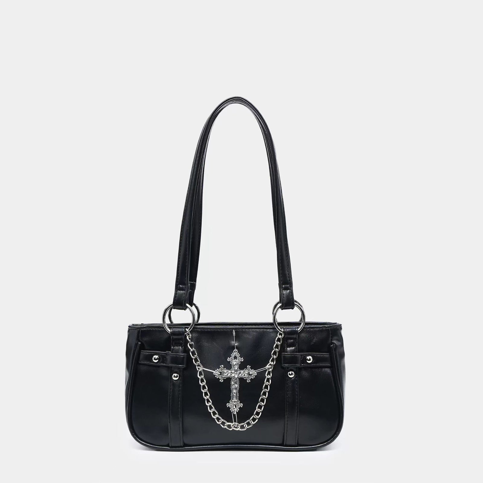 Gothic Style: Unique dark and edgy design with cross chain decorations.