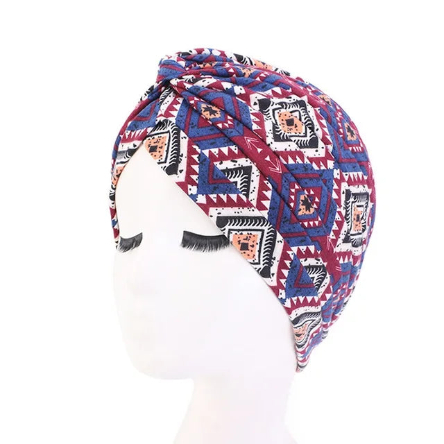 Hot Sale Ethnic Style Lady Turban Hat Print Indian Cap High Quality Muslim Sleep Bonnet For Women