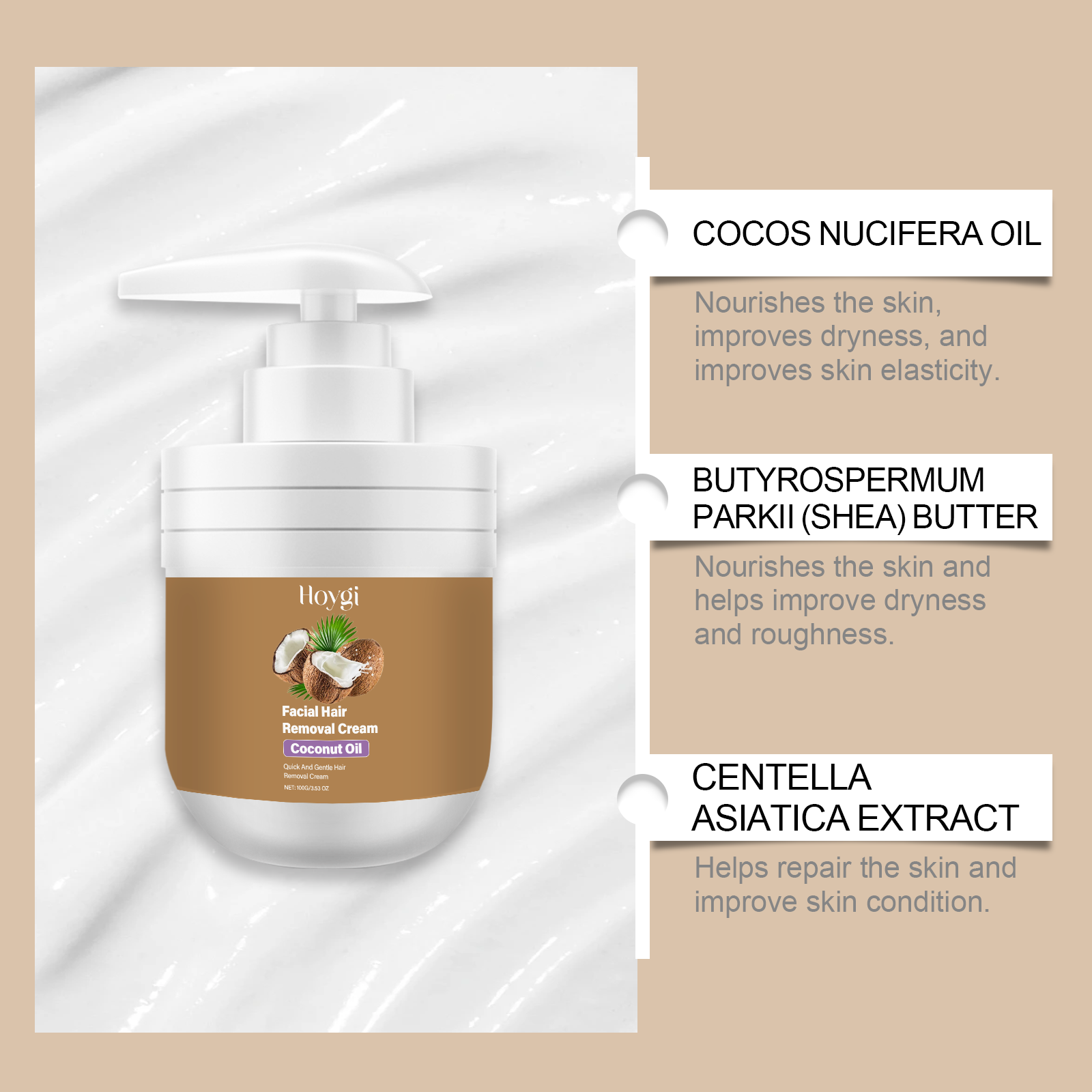 Hoygi Coconut Gentle Facial Hair Removal Cream, Facial Hair Removal Men And Women Lip Hair Beard Gentle Non-Irritating