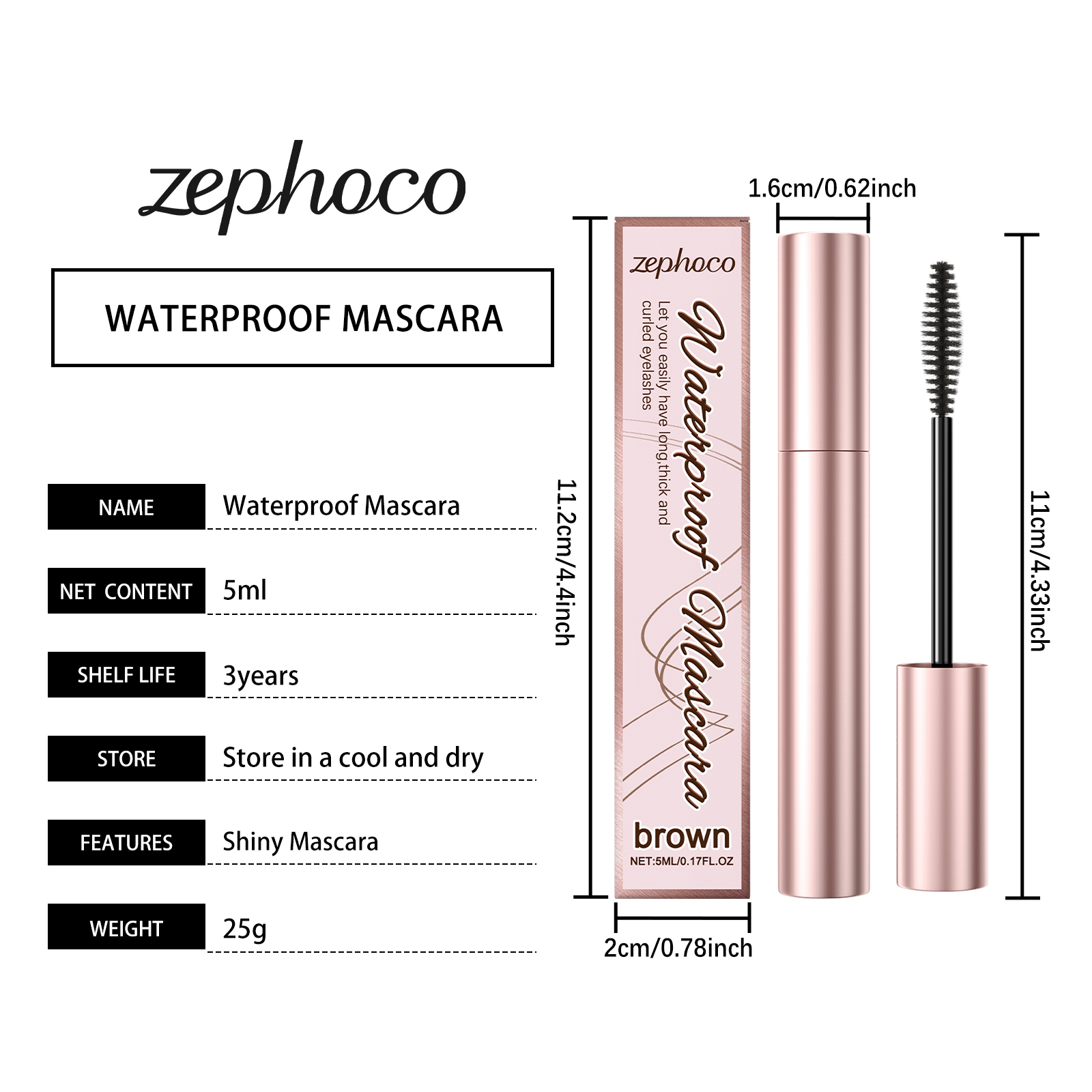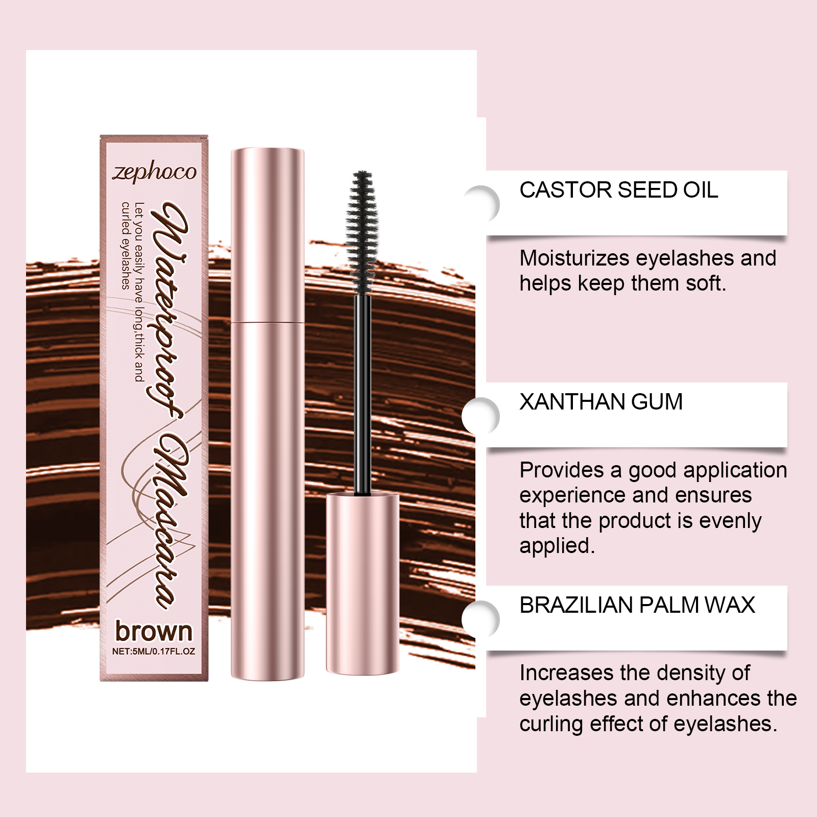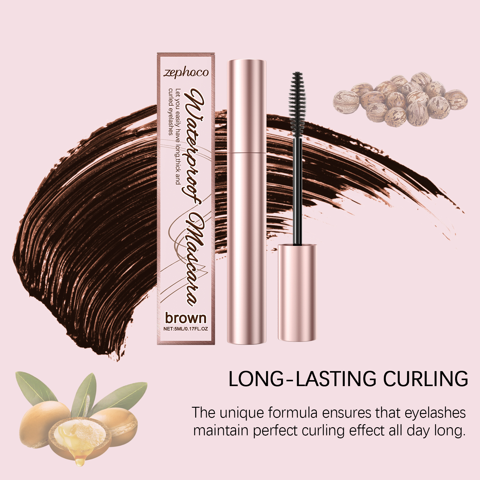 zephoco Brown Curl Mascara, Daily Moisturizes Natural Beauty Holding Eye Mascara